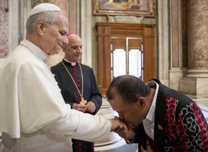 Vatikan-Marçal Evaristo Soares, seorang katekis asal Timor-Leste, menjadi salah satu dari 39 katekis dari berbagai negara yang menerima Salib Misi langsung dari Paus Leo XIV pada Minggu (28/9) di Lapangan Santo Petrus, Vatikan.