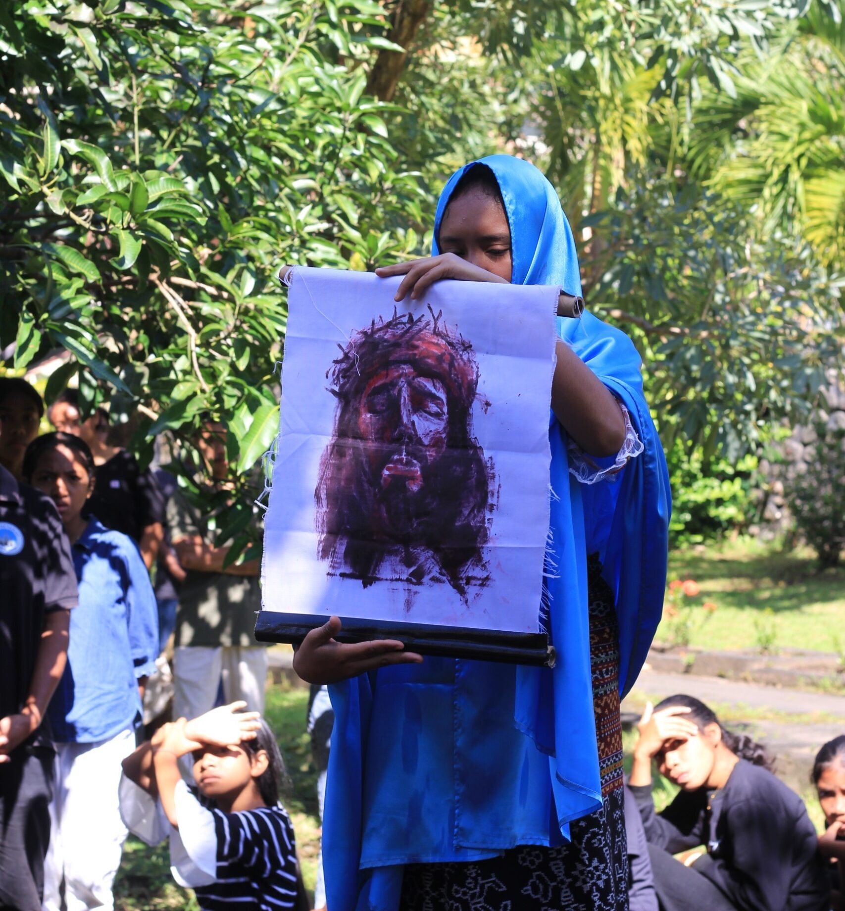 Pemilihan lokasi di taman tengah seminari memberi nuansa terbuka sekaligus simbolis: penderitaan Kristus tidak dikurung dalam ruang tertutup, tetapi dihadirkan di tengah kehidupan. Dengan latar yang sederhana, tablo ini justru berhasil menghadirkan kesan yang kuat—bahwa kisah salib bukan milik masa lalu, tetapi terus berulang dalam realitas hari ini.