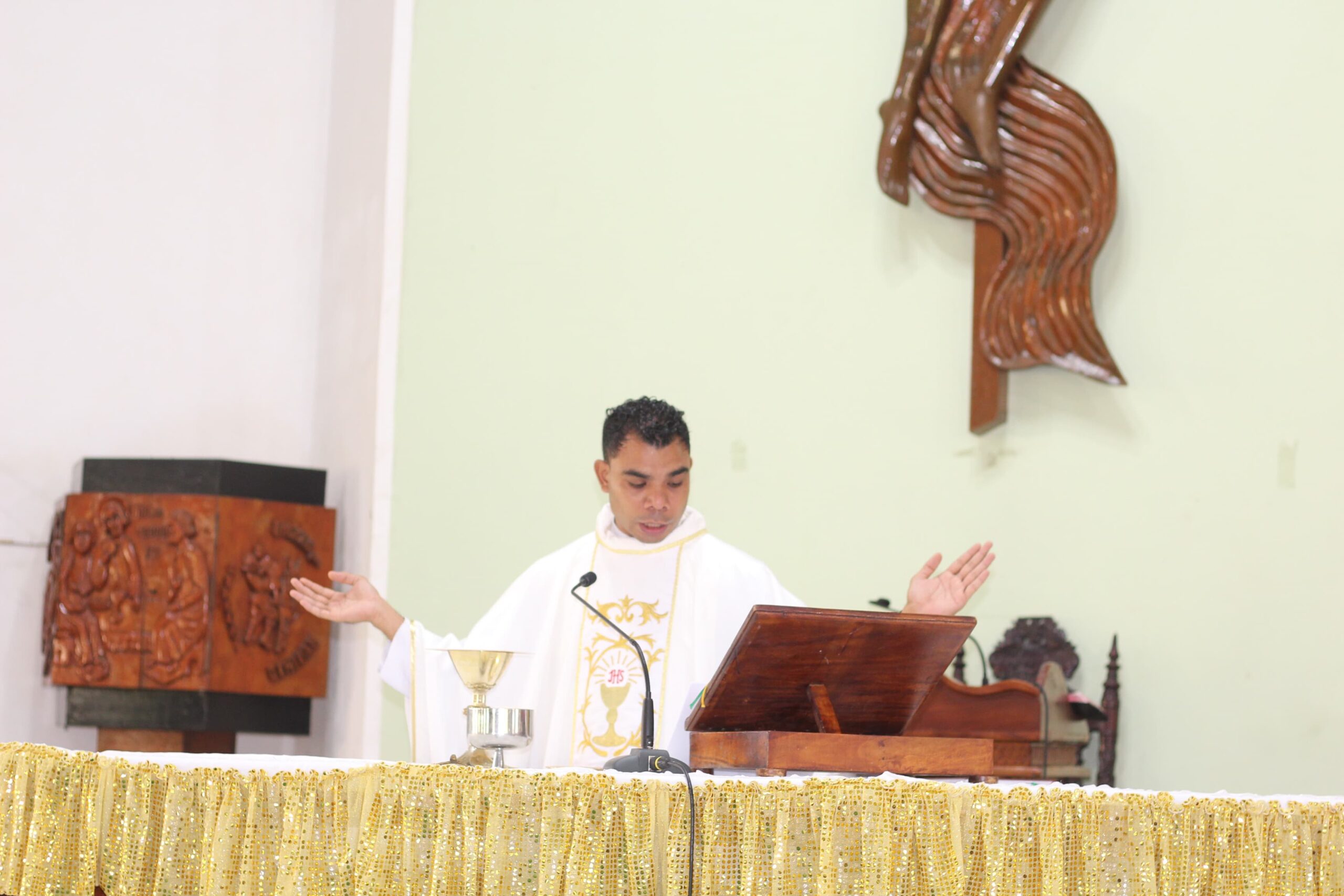 “Menjadi saksi berarti jujur pada kebenaran; tidak menambah, tidak mengurangi, serta berani menanggung konsekuensi. Menjadi saksi berarti berani mempertanggungjawabkan kebenaran, sekalipun harus berhadapan dengan risiko dan tekanan dalam kehidupan,” ujar Pater Kris dalam homilinya.