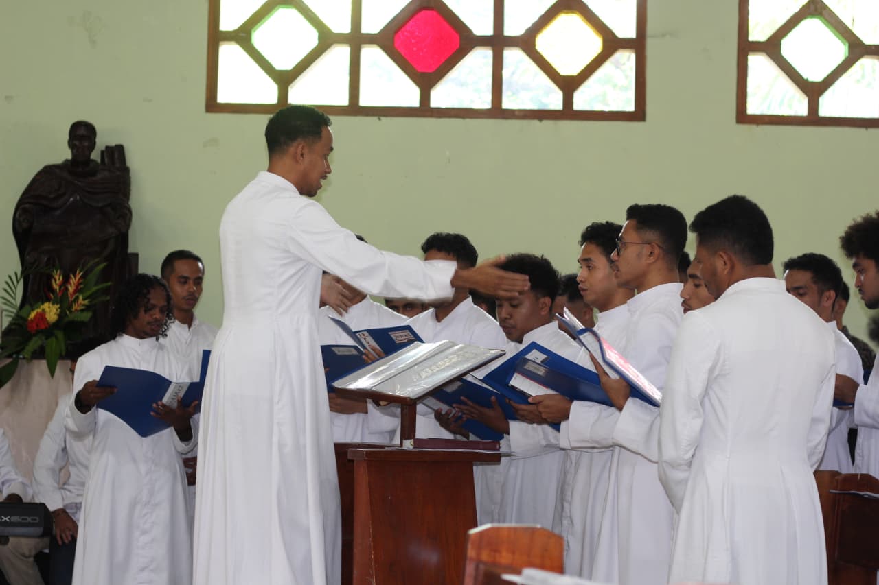Kelompok koor dari Unit St. Yosef Freinademetz Ledalero saat membawakan lagu-lagu pujian yang menghidupkan suasana perayaan Paskah. Partisipasi aktif para frater dalam petugas liturgi menjadi bagian integral dari tradisi perayaan di seminari tersebut.