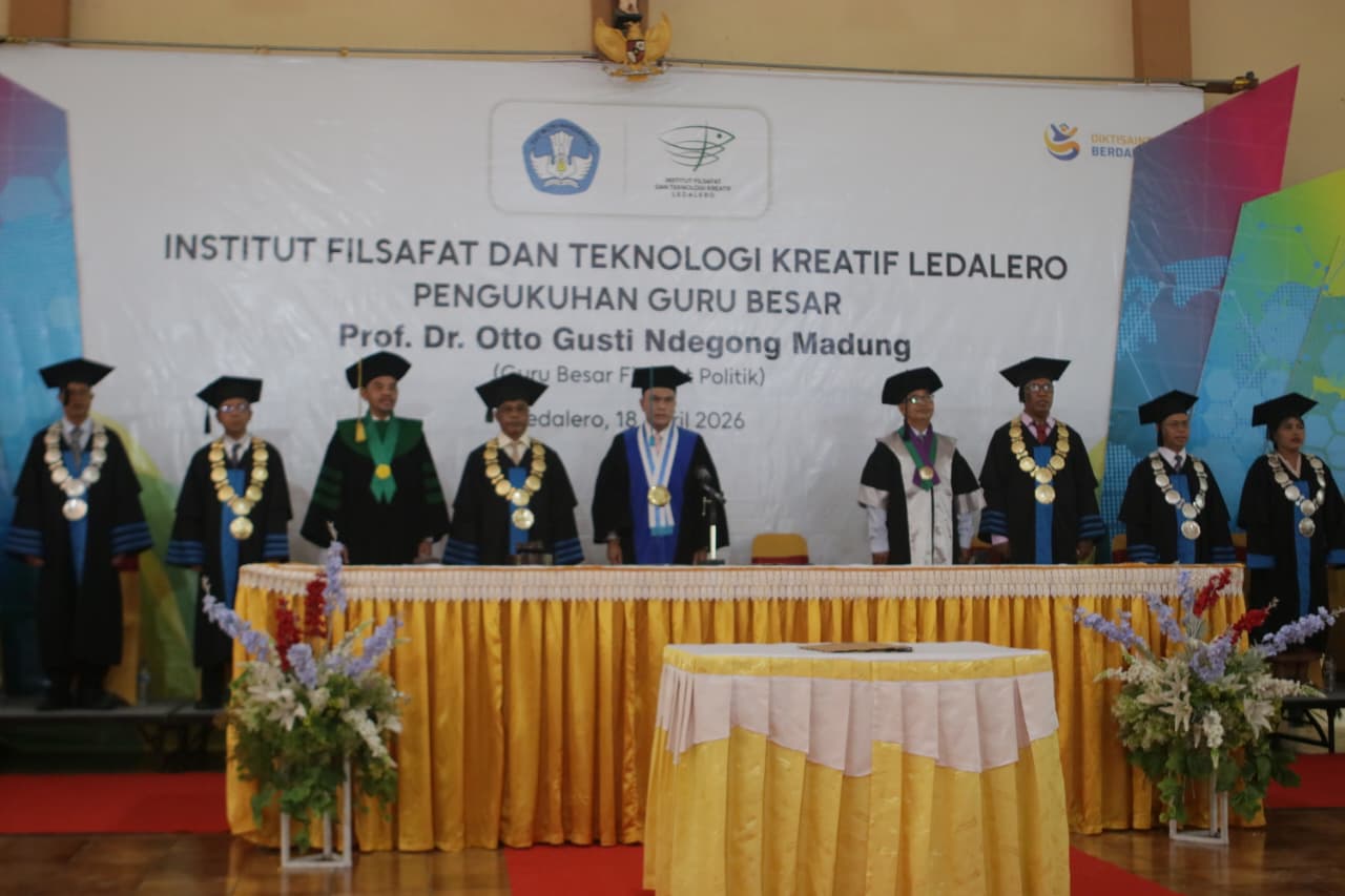 Rektor Institut Filsafat dan Teknologi Kreatif (IFTK) Ledalero, Dr. Otto Gusti Ndegong Madung, resmi dikukuhkan sebagai Guru Besar Filsafat Politik dalam Rapat Terbuka Luar Biasa Senat IFTK Ledalero, Sabtu (18/4/2026). Pengukuhan berlangsung di Auditorium Santo Thomas Aquinas, Kampus I IFTK Ledalero, Kabupaten Sikka, Nusa Tenggara Timur.